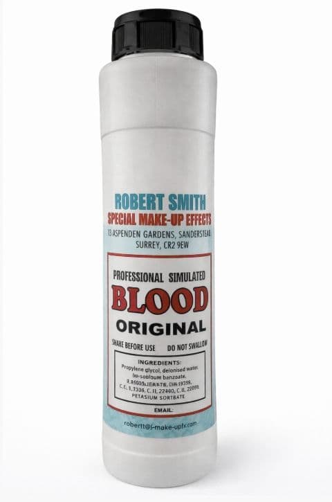 SFX Makeup Home / SFX Makeup / Robert Smith - Professional Simulated Blood Robert Smith - Professional Simulated Blood Robert Smith - Professional Simulated Blood £10.00 £8.33 (ex. VAT) RRP: £0.00 Stock Status: In Stock mouth-safe simulated blood, trusted by professionals for years Size: 150ml 500ml 1ltr 5ltr Size2: Original Arterial Aged Venous Add to your Wish List Description Robert Smith - Professional Simulated Blood Experience the industry standard in washable, mouth-safe simulated blood, trusted by professionals for years. Perfect for use on skin and fabric, it easily cleans off with warm water & soap optional for most cases. Ideal for stage, film, and special effects, this versatile simulated blood delivers authenticity with convenience Reviews Customer reviews No reviews left yet Write a review Most RecentTop Rated No reviews have been left for this product, be the first to leave a review Attributes Product Code: M40412 Weight: 0.15kg Related Products Fleet Street Bloodworks Drying Blood From: £19.95 £16.63 (ex. VAT) More details Quickview P.T.M. Blood £31.80 £26.50 (ex. VAT) More details Quickview Kensington Blood® £43.20 £36.00 (ex. VAT) More details Quickview Monster Makers Polymer Blood From: £8.00 £6.67 (ex. VAT) Out of stock Rob Smith Silicone Flow Blood From: £13.00 £10.83 (ex. VAT) More details Quickview